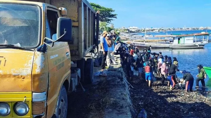Puluhan relawan dari komunitas pencinta lingkungan bersama tim kebersihan DLH berjibaku membersihkan pantai dari sampah. Hasilnya, puluhan kantong sampah terkumpul selanjutnya diangkut oleh truk armada sampah DLH untuk dibawa ke TPA Aloppoe, Parepare.