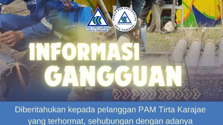 Terkini, Parepare - PAM Tirta Karajae mengumumkan adanya gangguan distribusi air di beberapa wilayah Kota Parepare.