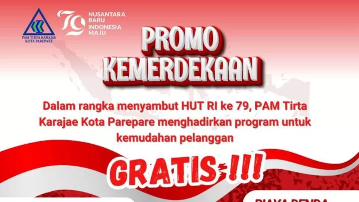 Terkini, Parepare - Dalam rangka menyambut HUT RI ke-79, PAM Tirta Karajae Kota Parepare menghadirkan program promosi khusus untuk memudahkan pelanggan.