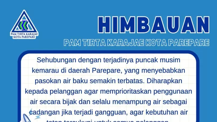 Terkini, Parepare – Perusahaan Air Minum (PAM) Tirta Karajae Kota Parepare mengeluarkan himbauan penting terkait puncak musim kemarau yang saat ini melanda Kota Parepare.
