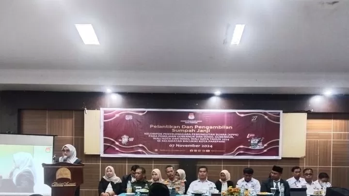 "Pengambilan sumpah anggota KPPS dalam rangka Pilgub dan Pilwalkot pad Pilkada serentak tahun 2024, dilaksanakan secara serentak seluruh Indonesia, dan ini tentunya patut berbangga bagi semua yang dilantik karena kalian terpilih sebagai bagian dari kesuksesan Pilkada di Kota Parepare ini,"katanya.