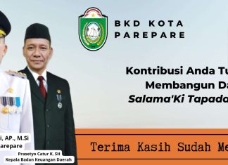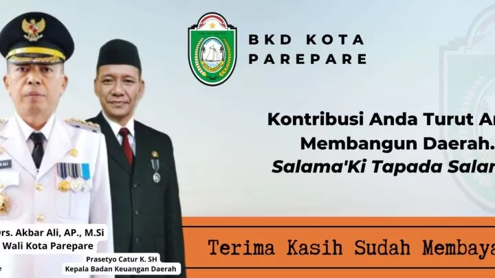 Pemerintah Kota Parepare melalui Badan Keuangan Daerah (BKD) Kota Parepare, mengapresiasi kepedulian masyarakat Kota Parepare, yang telah melakukan pembayaran pajak Bumi dan Bangunan (PBB) tepat pada waktu..